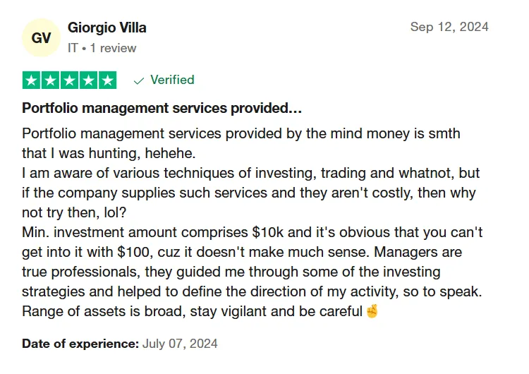 Команда Mind Money обладает высокой квалификацией и помогает клиентам разбираться в сложных вопросах, что делает процесс инвестирования более понятным и спокойным.